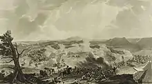 First, Vinchurkar's gun infantry targeted British Resident Elphinstone's house by firing from the other side of the river. After he left, Kokare's cavalry burned all the bungalows of the British in the vicinity. The residency was left and was at once sacked and burned, and Mr. Elphinstone retired to join the troops at Khadki. A message to advance was sent to Colonel Burr who moved towards Dapodi to meet Captain Ford's corps; the corps united and together pushed on to the attack. Amazed by the advance of troops whom they believed had been bribed or panic-struck, the Maratha skirmishers fell back, and the Maratha army, already anxious from the ill-omened breaking of their standard, began to lose heart. Gokhale rode from rank to rank cheering and taunting, and opened the attack pushing forward his cavalry so as to nearly to surround the British. In their eagerness to attack a Portuguese battalion, which had come up under cover to enclosures, some of the English sepoys became separated from the rest of the line. Gokhale seized the opportunity for a charge with 6000 chosen horsemen. Colonel Burr who saw the movement recalled his men and ordered them to stand firm and keep their fire. The cavalry charge proved ineffectual. The charge was broken by a deep morass in front of the English. As the horsemen floundered in disorder the British troops fired on them with deadly effect. Only a few of the Maratha horses pressed on to the bayonets, the rest retreated or fled. The failure of their great cavalry charge disconcerted the Marathas. They began to drive off their guns, the infantry retired, and, on the advance of the British line, the field was cleared. Next morning the arrival of the light battalion and auxiliary horse from Sirur prevented Gokhale from renewing the attack. The European loss was sixty-eight and the Maratha loss 500 killed and wounded.[3]