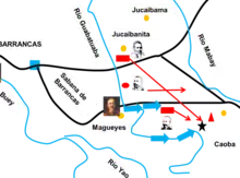 Maceo sends two squadrons of Lieutenant Colonel Rivero to join the cavalry, and Colonel Ríos's squad to join Headquarters. Under the Cuban attack, the Spanish forces managed to reach the Mabay River, while the Cubans occupied the Mabay River pass, among them Maceo with his staff and the Guá regiment squad.