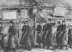 Battōtai (抜刀隊, Drawn-Sword Regiment) were a special police squad formed in Japan by the Meiji government in 1877 during the Satsuma Rebellion.[1][2] The detachment was armed with Japanese swords. The members of Battotai defeated the rebels in the Battle of Tabaruzaka. Their success in sword fighting led to a renewed interest in the art of kenjutsu, which had been abandoned after the Meiji restoration, and, as a result, the formation of modern kendo.[3][4][5][6][7]
