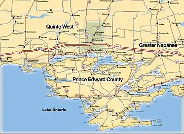 The Greater Bay of Quinte area includes the municipalities of Brighton, Quinte West, Belleville, Prince Edward County, and Greater Napanee as well as the Native Tyendinaga Mohawk Territory. Overall population of the area exceeds 200,000.[4]