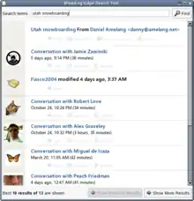 Beagle is a search system for Linux and other Unix-like systems, enabling the user to search documents, chat logs, email and contact lists. It is not actively developed.[1]