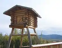 A bear cache, food cache or bear box is a place designed to store food outdoors and prevent bears and other animals from accessing it. They are used by campers when staying in bear habitat. They can also be used by hunters for storing game. A bear cache is often a structure that is more permanent, not to be confused with a bear canister.