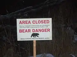 After a bear has been identified by park rangers or campers, that area may be closed off to humans. Signs are then posted on the borders of the closed area to prevent unaware campers from entering. Warnings about being fined $500, imprisoned for six months, and the obvious risk of being mauled by a bear are added on in some places as extra deterrents for humans to stay away. Some campgrounds will temporarily suspend tent camping and only allow camping in hard-shell vehicles.