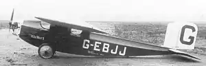 At Lympne in 1924 the Wee Bee flew as "No.4",[11] but at the Royal Aero Club meeting of August 1925,[14] also held at Lympne, it appeared as G-EBJJ.[15] At that meeting, with an aluminium front cockpit hatch in place of the earlier wooden one, it won the light two-seater race and came fourth in the Grosvenor Cup, both times piloted by A. N. Kingswill. In December 1933 it was sold to Percy Parker of Warrnambool, Victoria, Australia, where it was registered as VH-URJ. Mr. Parker sold it prior to 1939.[4] It flew until 1939 and was then stored, but probably flew again a few years after the end of World War II.,[4][16] though exact dates are uncertain.