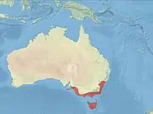 The beautiful firetail is endemic to Southeastern Australia. Its distribution range extends from Newcastle to Kangaroo Island, however, the bird is most prolific in Tasmania and off-shore islands. It lives in coastal heathland, forests and shrubbery, never far from water. Its preference for near water habitats was shown in a study of its occurrence in intact forest areas of the Victorian Central Highlands, where it was almost exclusively found in riparian habitat.[3]