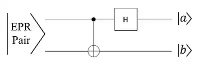 - Given Alice's measurements, Bob performs one of four operations on his half of the EPR pair and recovers the original quantum state.[1]