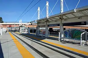 Belleview station is an light rail station in Denver, Colorado, United States. It is served by the E and R Lines, operated by the Regional Transportation District (RTD), and was opened on November 17, 2006.[4][5] This is the primary station serving the Denver Technological Center.[6] The station features a public art installation of a geometric pattern of roadway reflectors entitled Thunder over the Rockies through its pedestrian tunnel.[7] It was created by Richard Elliott and dedicated in 2006.[7]