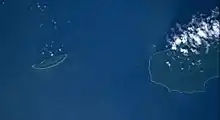 Bellona Island is an island of the Rennell and Bellona Province, in the Solomon Islands. Its length is about 10 km (6.2 mi) and its average width 2.5 km (1.6 mi). Its area is about 17 km2 (6.6 sq mi). It is almost entirely surrounded by 30–70 m (100–230 ft) high cliffs, consisting primarily of raised coral limestone.