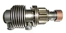 A Bendix drive is a type of engagement mechanism used in starter motors of internal combustion engines. The device allows the pinion gear of the starter motor to engage or disengage the ring gear (which is attached to the flywheel or flexplate of the engine) automatically when the starter is powered or when the engine fires, respectively. It is named after its inventor, Vincent Hugo Bendix.