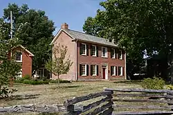 On May 14, 2001, the city of Edwardsville held a ground breaking ceremony to officially commence a restoration project aimed at returning the house to the most original condition possible. The eventual goal of the project was to furnish the home circa 1820s and open it as a house museum to the public.[2] The restoration project, overseen by the firm St. Louis Tuckpointing and Painting, carried a price tag of more than $1 million; $150,000 to purchase the house, $725,000 in restoration costs and $215,000 to purchase a nearby gas station.[12] Initially the project was to be completed by December 2003, but by April 2004 most of the exterior work had been finished with interior plastering and wood floor installation remaining.[11][12] The restoration was nearly totally completed by the time the official dedication ceremony occurred on July 1–2, 2006, more than six years after the purchase of the house by the city.[13]