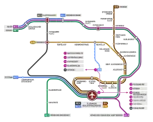 The Berlin S-Bahn (German: [ˈɛs baːn]) is a rapid transit railway system in and around Berlin, the capital city of Germany. It has been in operation under this name since December 1930, having been previously called the special tariff area Berliner Stadt-, Ring- und Vorortbahnen (Berlin city, orbital, and suburban railways).[1] It complements the Berlin U-Bahn and is the link to many outer-Berlin areas, such as Berlin Brandenburg Airport. As such, the Berlin S-Bahn blends elements of a commuter rail service and a rapid transit system.