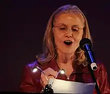 In California, Anderson became known as one of the prominent "avant-garde feminist composers, critics, and poets."[6] She married the computer book author Elliotte Rusty Harold on July 28, 1995, one year after they met at a potluck dinner held by the New York Macintosh Users Group. A 1995 The New York Times feature story on Harold's wedding called her both old-fashioned and conventional and observed, "She giggles often, as lightly as wind chimes. And yet she listens to the band Megadeth when cleaning her apartment."[5]