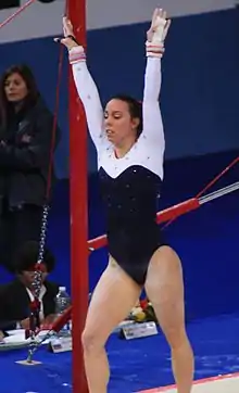 Elizabeth Kimberly Tweddle MBE (born 1 April 1985) is a retired British artistic gymnast. Renowned for her uneven bar and floor routines, she was the first female gymnast from Great Britain to win a medal at the European Championships, World Championships, and Olympic Games. Tweddle, known for her consistency and longevity as an elite gymnast, is regarded as a pioneer of the renaissance of British gymnastics at the beginning of the twenty-first century that saw the country's gymnastics programme progress from 'also ran' to consistent global competitiveness, and along with peers such as Vanessa Ferarri of Italy and Isabelle Severino of France, helped begin a period of significant success for western European gymnasts globally.[3][4]