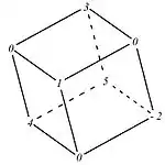 In mathematics, in number theory, a Bhargava cube (also called Bhargava's cube) is a configuration consisting of eight integers placed at the eight corners of a cube.[1] This configuration was extensively used by Manjul Bhargava, a Canadian-American Fields Medal winning mathematician, to study the composition laws of binary quadratic forms and other such forms. To each pair of opposite faces of a Bhargava cube one can associate an integer binary quadratic form thus getting three binary quadratic forms corresponding to the three pairs of opposite faces of the Bhargava cube.[2] These three quadratic forms all have the same discriminant and Manjul Bhargava proved that their composition in the sense of Gauss[3] is the identity element in the associated group of equivalence classes of primitive binary quadratic forms. (This formulation of Gauss composition was likely first due to Dedekind.)[4] Using this property as the starting point for a theory of composition of binary quadratic forms Manjul Bhargava went on to define fourteen different composition laws using a cube.