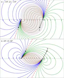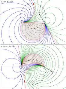- : the sum is the angular width of the lens/lune, covering the biarc, whose sign corresponds to either increasing (+1) or decreasing curvature (−1) of the biarc, according to generalized Vogt's theorem (Теорема Фогта#Обобщение теоремы).