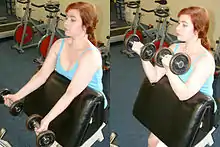 The biceps can be strengthened using weight and resistance training. Examples of well known biceps exercises are the chin-up and biceps curl.