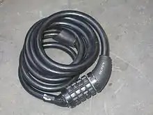 Cable locks are in many ways similar to chain locks. Cable locks often come with the locking mechanism already permanently integrated. Otherwise, a length of cable with loops on both ends can also be used.