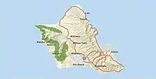 The lowland dry ecosystem includes shrublands and forests generally below 3,300 ft (1,000 m) elevation. This system receives less than 50 in (130 cm) annual rainfall, with mostly dry substrate. On O'ahu, this ecosystem is typically found on the leeward side of the Wai'anae Mountains, and the leeward southern coast, including Diamond Head Crater. Biological diversity is low to moderate in this ecosystem.[4]