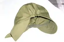 The Bigeard is a cloth field cap with a short cloth peak. Originally produced in lizard,[3][4] it was later produced in olive green and various camouflage patterns to include,[5] forest,[6] and desert.[6] The cap is more of a peaked sidecap and is available with or without neck flaps for sun protection.[6]