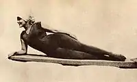 In Coronation of the Winner, a mosaic in the floor of a Roman villa in Sicily that dates from the Diocletian period (286–305 AD), young women participate in weightlifting, discus throwing, and running ball games dressed in bikini-like garments (technically bandeaukinis in modern lexicon).[9][28] The mosaic, found in the Sicilian Villa Romana del Casale, features ten maidens who have been anachronistically dubbed the "Bikini Girls".[29][30] Other Roman archaeological finds depict the goddess Venus in a similar garment. In Pompeii, depictions of Venus wearing a bikini were discovered in the Casa della Venere,[31][32][33] in the tablinum of the House of Julia Felix,[34] and in an atrium garden of Via Dell'Abbondanza.[35]