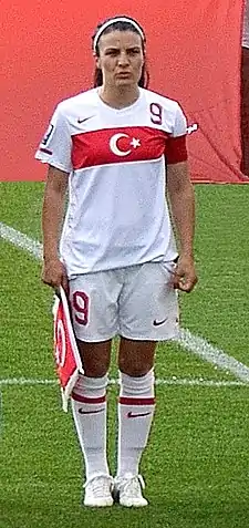 Bilgin Defterli (born 1 November 1980) is a Turkish women's football forward currently playing in the 2. Frauen-Bundesliga for Alemannia Aachen in Germany with jersey number 9. She has been a member of the Turkey women's national football team since 1999 and serves as their captain. Defterli is 160 cm (5 ft 3 in) tall.[1]