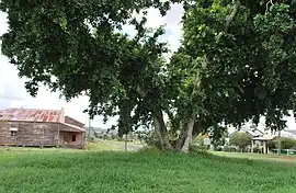 ![]() The Burnett Highway passing through Binjour, seen through a tree. The former general store can be seen to the left | |||||||||||||||