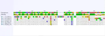 These are sequences being compared in a MUSCLE multiple sequence alignment (MSA). Each sequence name (leftmost column) is from various louse species, while the sequences themselves are in the second column.
