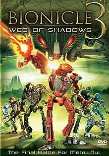 Bionicle 3: Web of Shadows is a 2005 computer-animated science fantasy action film based on the Bionicle toy line by Lego and the third installment in the Bionicle film series. It is largely a sequel to Bionicle 2: Legends of Metru Nui, with the majority of events taking place before that film's ending. Like Legends of Metru Nui, Web of Shadows is a prequel to the first film, Bionicle: Mask of Light. This is the first Bionicle film to not be given a rating by the MPAA. It was released on DVD on October 11, 2005, by Buena Vista Home Entertainment under the Miramax Home Entertainment label.