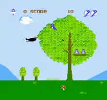 Each level represents a season in the ecosystem of a bird. The game starts out in early spring. As the virtual year progresses, the season evolves into summer and eventually into autumn. After autumn, the game repeats itself by portraying the following spring. If the proper number of butterflies are not fed to the babies, then the babies end up starving to death, becoming unconscious.[4] The player will automatically lose a life if any of the baby birds die. In addition to this, the player also loses a life when a predator catches the player trying to deliver butterflies to a baby.
