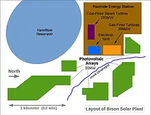 The Bison Solar Plant, also known as the Rawhide Flats Solar Plant, is a 30 megawatt (MWAC) photovoltaic power station in Larimer County, Colorado located about 10 miles (16 km) north of the town of Wellington. The plant is notable for being one of the first in the U.S. built to a 1500 Volt system specification.[1][2] The electricity is being sold to the Platte River Power Authority (PRPA) under a 25-year power purchase agreement.[3][4]