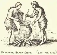 Black drink is a name for several kinds of ritual beverages brewed by Native Americans in the Southeastern United States. Traditional ceremonial people of the Yuchi,[1] Caddo,[2] Chickasaw,[3] Cherokee, Choctaw, Muscogee and some other Indigenous peoples of the Southeastern Woodlands use the black drink in purification ceremonies. It was occasionally known as white drink because of the association of the color white with peace leaders in some Native cultures in the Southeast.[4]