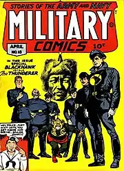 Blackhawk is the eponymous fictional character of the long-running comic book series Blackhawk first published by Quality Comics and later by DC Comics. Primarily created by Chuck Cuidera with input from both Bob Powell and Will Eisner,[1] the Blackhawk characters first appeared in Military Comics #1 (August 1941).[2]