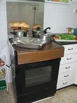 - The pot is placed on the blech. It is permissible to place another pot on this one.
