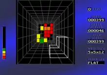 Blockout is a puzzle video game published in 1989 by California Dreams. It was developed in Poland by Aleksander Ustaszewski[5] and Mirosław Zabłocki. American Technos published an arcade version. Blockout is an unlicensed, 3D version of Tetris.