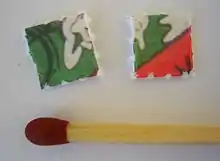 Drugs active in microgram range, most notably LSD, are commonly distributed illicitly on blotting paper. A liquid solution of the drug is applied to the blotting paper, which commonly is perforated into individual doses and artfully decorated with what is known as blotter art. Vanity blotter is blotter art that has not been exposed to LSD and is usually sold as a collectible, although inevitably much of this art ends up in illegal distribution. The artwork is printed onto blotter paper and then sometimes perforated into tiny squares or "tabs" which can be torn or cut apart.[3] Most blotter art designs have grid lines as part of the design to either aid in perforation or to be left as a cutting grid. Blotter as a delivery method allows for easy dosing of potent substances and easy sublingual administration of drugs which has made it increasingly popular as a preparation for other potent drugs including 25I-NBOMe and alprazolam.[4]