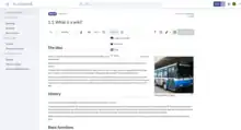- Editing: A version of the MediaWiki VisualEditor is delivered, which, unlike the original, contains additional functions, such as an easier procedure for uploading documents or inserting dynamic content. The creation of new pages is supported by page templates.