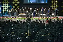 On March 13, 1996, renovations to expand the arena took place, eliminating the permanent stage at the south end of the building. On July 24, 1998, Blue Cross Blue Shield and City officials announced that the name of the renovated arena would be Blue Cross Arena at the War Memorial. On September 18, 1998, the arena reopened to the public during a formal ribbon cutting/rededication ceremony. DeWolff Partnership Architects completed the project as Architects of Record with Rossetti Architects in a consultant relationship. C.E. DeWolff, Senior Partner of DeWolff Partnership, Geno Rossetti of Rossetti Architects, were Design Associates who collaborated on features of the design.[8] In 2018, the city terminated the arena management contract with long term operator SMG who had been running the arena since 2000. In July 2018, the city reached an agreement with Pegula Sports and Entertainment, owners of the Americans, Buffalo Sabres and Buffalo Bills and operators of KeyBank Center in Buffalo to operate the arena beginning on August 1, 2018.[9] Shortly after the Pegula takeover the arena received updates of a new center scoreboard, a new ribbon board at the stage end of the arena and enhancements to the audio and video equipment. There are plans for expansion along the Exchange Boulevard side of the arena that will make room for additional office space and improved locker room facilities as well as planned upgrades to the bathrooms, new concessions and a restaurant.[10]