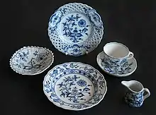 Blue Onion (German: Zwiebelmuster) is a porcelain tableware pattern for dishware originally manufactured by Meissen porcelain since the 18th century, and since the late 19th Century has been copied by other companies.