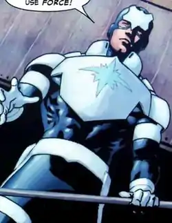 | Abilities | Wears a micro circuitry-lined belt that grants: Force field generation Superhuman physical attributes |