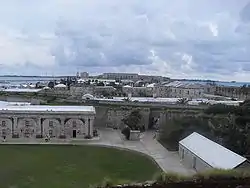 Ordnance Yards were also constructed in colonial ports overseas; like their counterparts in Britain, these were usually built in the vicinity of naval dockyards. Bermuda's, begun in the 1830s, remains largely intact behind the dockyard fortifications; its magazines and storehouses are arranged around a small pool, where boats would arrive by way of a tunnel through the ramparts to be loaded with ammunition.[24]