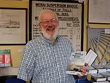 During his time with the trust he used his knowledge of the Menai Strait bridges and their designers Thomas Telford and Robert Stephenson to develop guided tours of the bridges and school workshops about bridges and engineering.[5] He published a self-guided tour in book form as A Walking Guide to the Menai Strait Bridges.[6][7] He later published a comprehensive book about the history of the building and reconstruction of the Menai Suspension Bridge, Menai Suspension Bridge – The First 200 Years.[8]