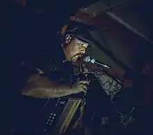 A founding member of Great Big Sea, Hallett performed vocals, mandolin, mandola, bouzouki, banjo, fiddle, guitar, whistles, bagpipes, accordion, and concertina with the band.[4] Hallett, Darrell Power, and Séan McCann began playing together in a Celtic band called Rankin Street in 1989, with Alan Doyle joining in 1993.[4] Rankin Street built a following playing at local St. John's pubs, including Bridget's and Greensleeves, and released one recording on cassette titled "Rankin Street". As Great Big Sea, the group played its first official gig on March 11, 1993, opening for the Irish Descendants at Memorial University, and focusing on playing traditional instruments. Great Big Sea released nine albums between 1993 and 2010, including several platinum and gold titles. Touring intensively, the band and band members gained acclaim across North America prior to retiring in 2013 following a 20th anniversary tour. Highlights include reaching the top ten of the Canadian RPM pop chart in 1997 with "When I'm Up (I Can't Get Down)", a cover of a song by the British folk group Oysterband;[5][6] winning the Entertainer of the Year award at the East Coast Music Awards every year between 1996 and 2000;[5] and receiving nominations for several Juno Awards[7] including Group of the Year in 1998, 2005, 2009, and 2011.