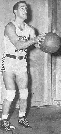 He went back to the ABL and was again the league's scoring leader, returned to the Celtics for another season, then settled down for a while with the Ft. Wayne Zollner Pistons of the National Basketball League in 1941. From 1941 to 1946 he was at his peak. He improved his shot and for the first time, his free throw percentage rose near or around 80%. He continued to get more accurate and dangerous while keeping his legendary range. The Pistons won over 80% of their games and made four consecutive NBL finals appearances. They won NBL titles in 1944 and 1945, as well as the World Professional Basketball Tournament in Chicago. At the same time, his popularity soared, and he appeared at a war bond rally alongside Jack Dempsey and Martha Raye.[1]
