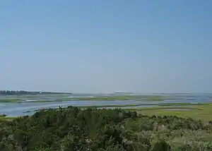 Bogue Sound is a lagoon in the state of North Carolina separating the Bogue Banks, a 21-mile-long (34 km) barrier island, from the mainland. The sound is part of North Carolina's "Crystal Coast", a tourism marketing term that is also used interchangeably with the term "Southern Outer Banks." It is the southwestern-most sound among the interconnected series of sounds along the Outer Banks that starts in the northeast at Currituck Sound.