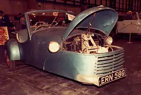 Around the same time as the Mark B was launched, work had begun on what was referred to subsequently as a "streamlined version" of the Minicar.[42] Badged as the 'ESC' (England's Smallest Car), this prototype utilised the main body and rear suspension of the Mark B, but added mock front wings, a passenger side door and a valance beneath its oval-shaped grille.[35]