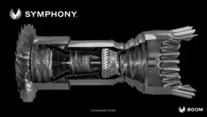 The Boom Symphony is a medium-bypass turbofan engine under development by Boom Technology for use on its Overture supersonic airliner. The engine is designed to produce 35,000 pounds (160 kN) of thrust at takeoff, sustain Overture supercruise at Mach 1.7, and burn sustainable aviation fuel exclusively.[1]
