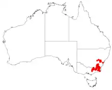 Leafy bossiaea grows in open forest and woodland, sometimes in Sphagnum bogs, at high altitudes south from near Orange in New South Wales through the Australian Capital Territory to the ranges in the east and north-east of Victoria.[2][3][4]