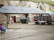 In the years from 1847 to 1851 the works was considerably developed by the construction of ferrous and non-ferrous foundries, a pattern making shop, a blacksmith's shop, a carpenter's shop, and an engine house in which a steam engine provided power for machinery in a sawmill, pattern shop and machine shops. In the 1870s further construction provided a paint shop, joiner's shop and erecting shop in which in 1879 and 1885 the double Fairlie engines Merddin Emrys and Livingston Thompson were built. Prior to 1915 the works employed about 30 men. During World War I most of the works was used as a munitions factory (largely staffed by women) from 17 September 1915 until early in 1919. The fortunes of the railway and its works declined from the mid-1920s with total closure from March 1947 to September 1954.