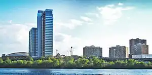 The Towers is one of the three Boston University dormitories traditionally intended for freshmen and sophomores, the others being Warren Towers and West Campus. The building comprises two towers, each nine floors high and linked at ground level by a single story structure housing common facilities. It is located on the eastern end of campus, next to Wheelock College of Education and Human Development and behind the Questrom School of Business. It appeared in the movie 21 as the dormitory which housed MIT student Ben Campbell (Jim Sturgess).