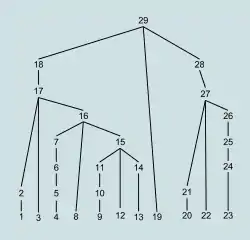 The bottom-up name comes from the concept of a parse tree, in which the most detailed parts are at the bottom of the upside-down tree, and larger structures composed from them are in successively higher layers, until at the top or "root" of the tree a single unit describes the entire input stream. A bottom-up parse discovers and processes that tree starting from the bottom left end, and incrementally works its way upwards and rightwards.[2] A parser may act on the structure hierarchy's low, mid, and highest levels without ever creating an actual data tree; the tree is then merely implicit in the parser's actions. Bottom-up parsing patiently waits until it has scanned and parsed all parts of some construct before committing to what the combined construct is.